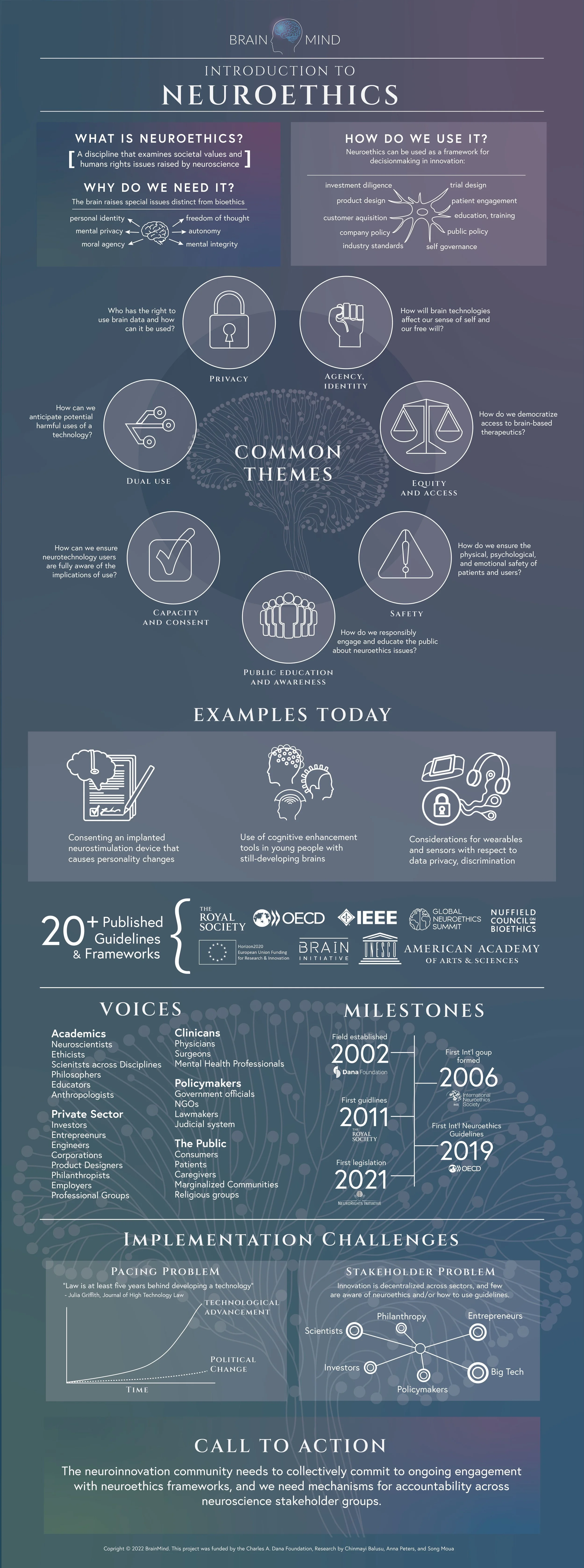 In 2026, BrainMind will convene a sector-defining summit: "Asilomar for the Brain and Mind." This global, multi-sectoral meeting will focus on the research, development, distribution, and use of near-term innovations in brain science. Regulation will never keep pace with technological innovation. We need to build neuroethics into the culture. Influential leaders across brain science sectors must come together to adopt unified ethical principles and practical tools for responsible neuroinnovation.